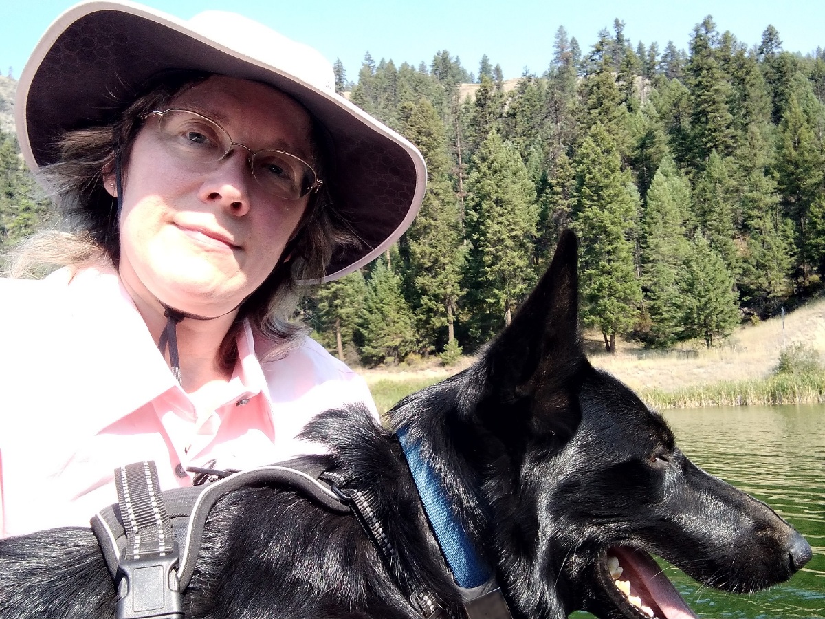 The dog was refusing to go potty, so I gave up and called her. She wouldnât come, either. I tried calling, and then coaxing. What on earth is wrong with her? She usually comes right away. She stood a short distance away from me, standing still, refusing to move, and then she started growling, showing her teeth, hackles bristling. She was looking straight at me like that, with her head down. It was very disconcerting. My dog has lost her mind? Sheâs turning against me? Sheâs going nuts. She has rabies. Or⊠Thereâs something right behind me. Sheâs low enough that she can see it through the space under the Montana. I tell ya, those were the five longest steps of my life. I climbed up inside, step, step, step, trying to move slowly like I wasnât in a hurry. But not too slowly. When I got up in there I called the dog and she DASHED in after me. I slammed the door and I AM NEVER GOING OUT THERE AGAIN!!! I never did. At least not until really late the next morning when the sun was high and everything looked less scary.